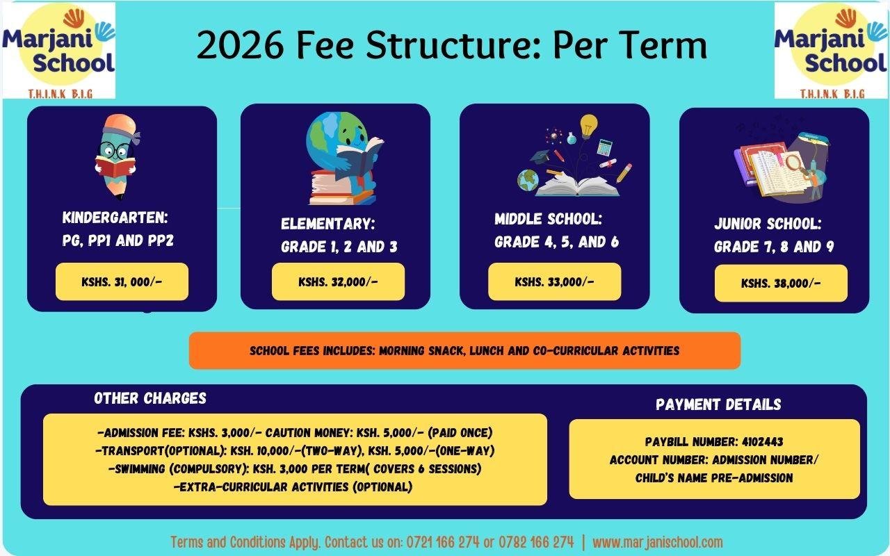Marjani School follows the Competency-Based Curriculum (CBC), focusing on developing both academic excellence and essential life skills. Our curriculum is designed to nurture creativity, critical thinking, and problem-solving abilities in learners. We believe this approach prepares students for real-world challenges while cultivating a love for learning. You can read more about it here: https://kicd.ac.ke